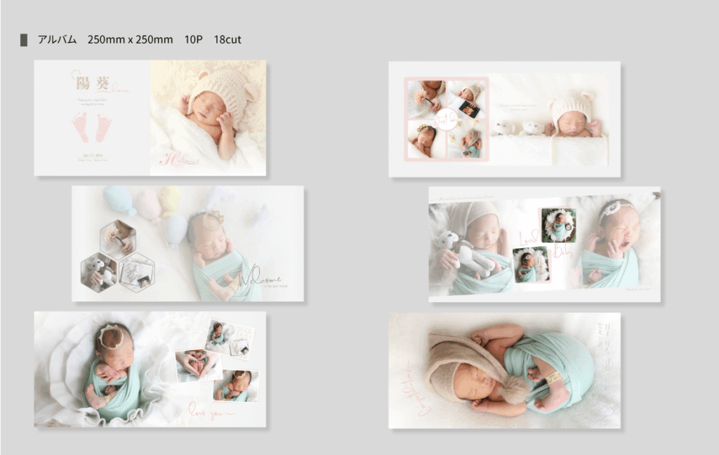 とっても可愛らしい顔出しフォトをメインにしたかったので、 水色をメインカラーに、